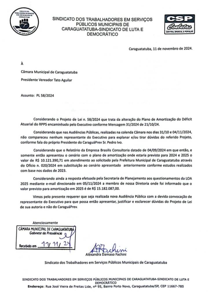 Também protocolamos um pedido junto à Câmara dos Vereadores para que seja marcada uma nova Audiência Pública sobre o projeto de lei que altera o Plano de Amortização do Déficit Atuarial do RPPS. Muitas questões ficaram sem resposta, sobretudo por parte do Poder Executivo. É importante esclarecermos!
