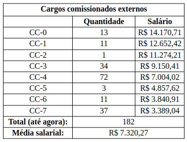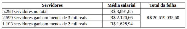 E temos ainda outros dados bem interessantes. Veja como se distribuem os salários do funcionalismo municipal em contraste com os salários dos comissionados:
