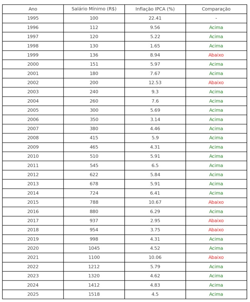 Vamos ver agora a evolução do Salário Mínimo nacional.