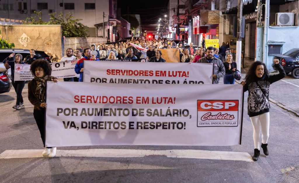 Foi uma noite histórica para Caraguatatuba! O SindCaraguatatuba reuniu mais de duzentas pessoas numa mobilização contra os baixos salários do funcionalismo municipal, pelo aumento dos vales refeição e alimentação e pela valorização dos Agentes de Apoio Escolar e das Auxiliares de Desenvolvimento Infantil. Os servidores se concentraram na Praça Cândido Mota e se dirigiram, em passeata, até a Praça da Cultura. Vamos continuar juntos e mobilizados para o dia 05/08 e decidir, coletivamente, nossas próximas ações.
