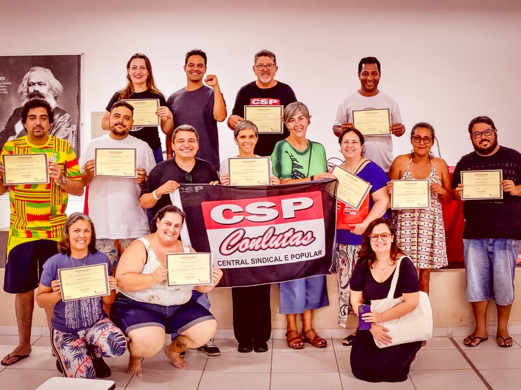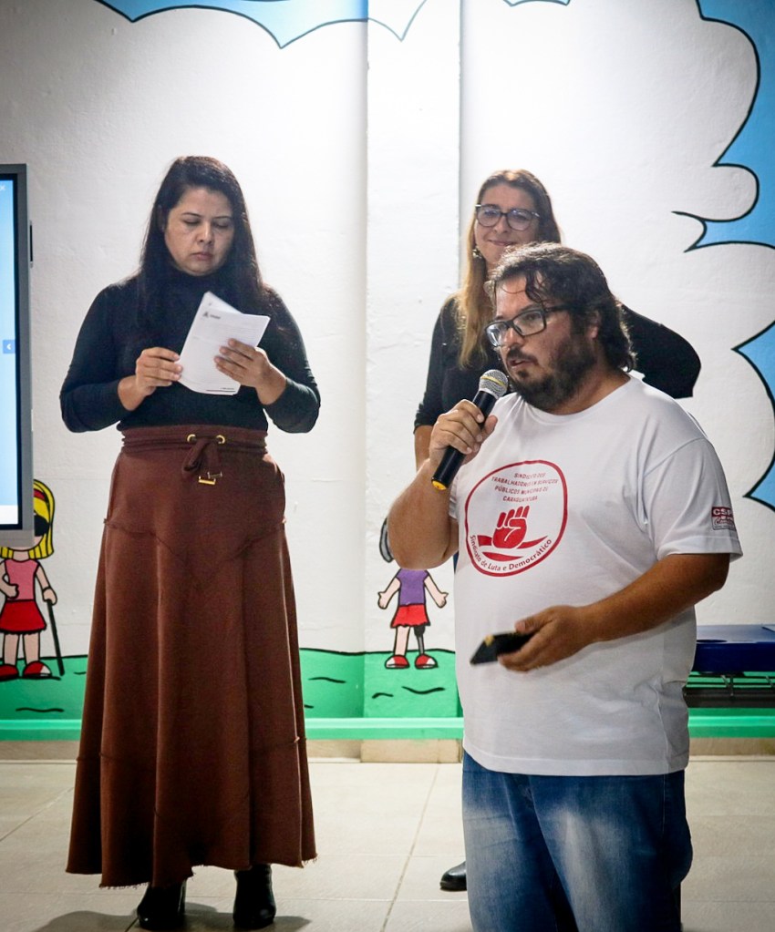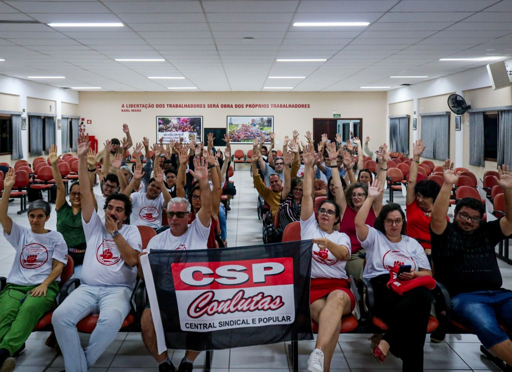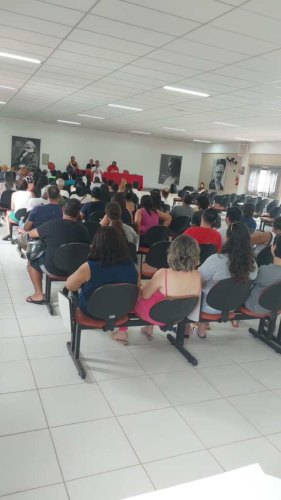 A história do SindCaraguatatuba, no entanto, começa antes. No início de 2024, em abril, alguns servidores se reuniram com dirigentes regionais da CSP-Conlutas buscando auxílio para as diversas demandas sindicais represadas ao longo de tantos anos pela inação do suposto sindicato até então existente. Destacaram-se, desde o início, a dedicação da Alexandra, atual presidente, e do Anderson, tesoureiro, que tomaram a iniciativa. Após meses de encontros e organização, que levaram à elaboração e à circulação de um abaixo-assinado entre os servidores, nasce no dia 17 de agosto de 2024, em Assembleia Geral, o SindCaraguatatuba, com o apoio de diversas entidades sindicais da região.