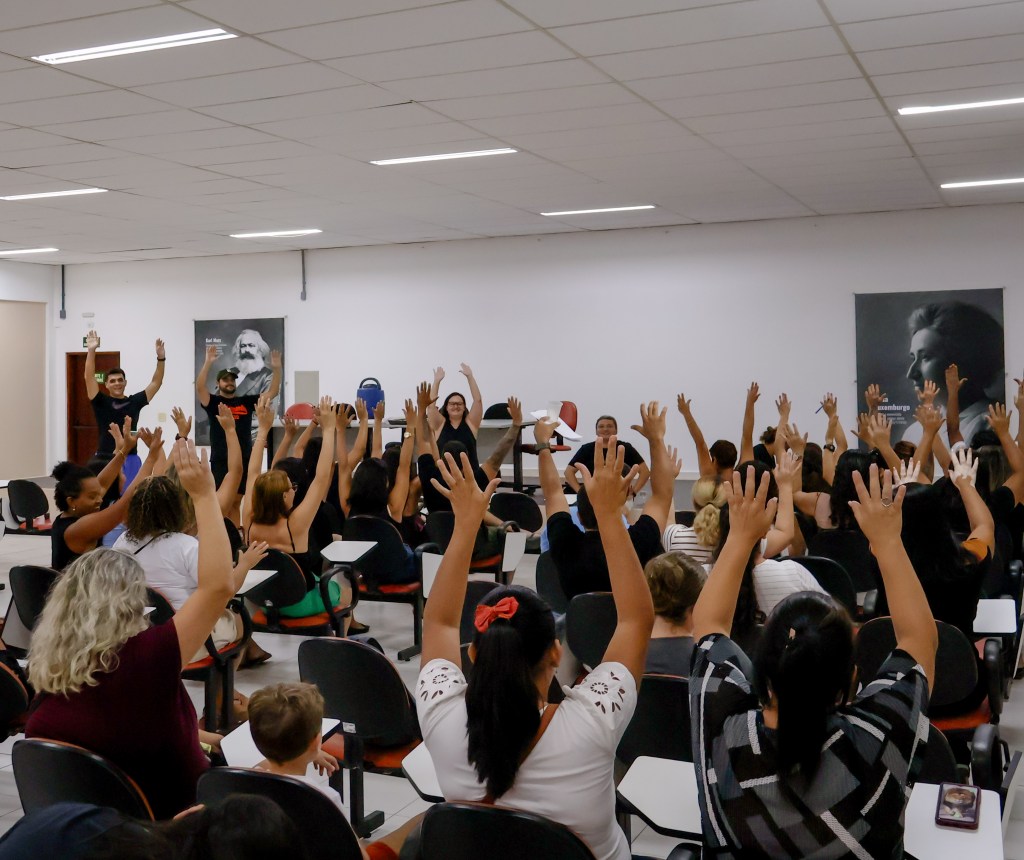 Com a presença da advogada Dra. Eliana Ferreira e a participação de mais de 50 servidores e servidoras, os encaminhamento aprovados foram: 1. Ajuntamento de documentos para entrar com ações para anulação das faltas injustificadas provenientes da Paralisação de 28/08/2025; 2. Protocolo junto à Prefeitura e à Câmara de um requerimento que será elaborado pelas advogadas sobre o enquadramento das ADIs e AAEs no magistério.